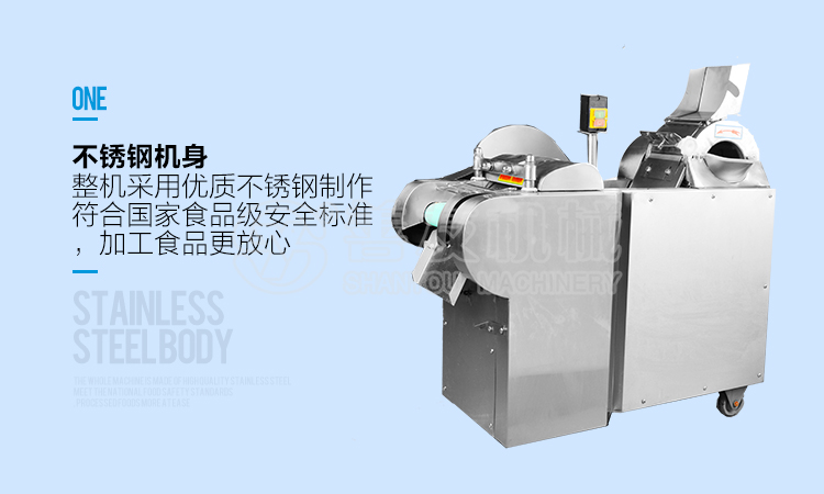 1、将不锈钢切菜机器放置在水平的工作场地,确保机器工作平稳可靠。